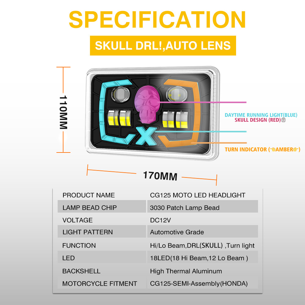 YAYE CG125 Halbmontage Roter Schädel DRL optischer Projektor Objektiv Motorrad LED-Zubehör Scheinwerfer 4