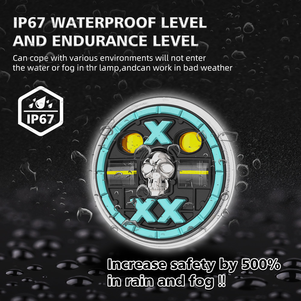 YAYE 5,75 Zoll GN125 Gelb Weiß LED Zubehör Rot Totenkopf Motorrad Fern- und Abblendlicht Tagfahrlicht mit optischer Linse 4